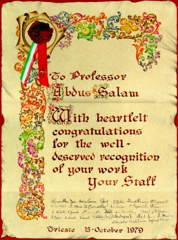 1979 - Istituto di Fisica Teorica, Università degli Studi di Trieste: Congratulations for the Nobel Prize